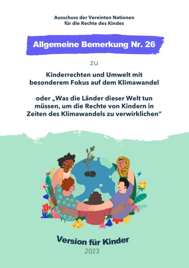 Im Vorwort der Allgemeinen Bemerkung Nr. 26 zu Kinderrechten und Umwelt mit besonderem Fokus auf dem Klimawandel (General Comment 26) wird betont, dass die Staaten sicherstellen sollen, dass die vorliegende allgemeine Bemerkung bei allen Beteiligten, insbesondere bei Kindern, weit verbreitet wird und in mehreren Sprachen und Formaten, einschließlich altersgerechter und zugänglicher Versionen, zur Verfügung gestellt wird. Dies ist die deutsche Version für Kinder.