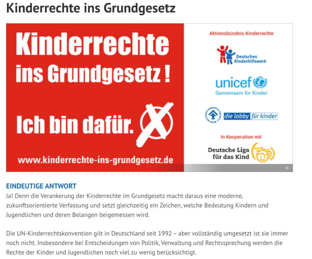 Die Website bietet einen Überblick zum Thema Kinderrechte ins Grundgesetz.