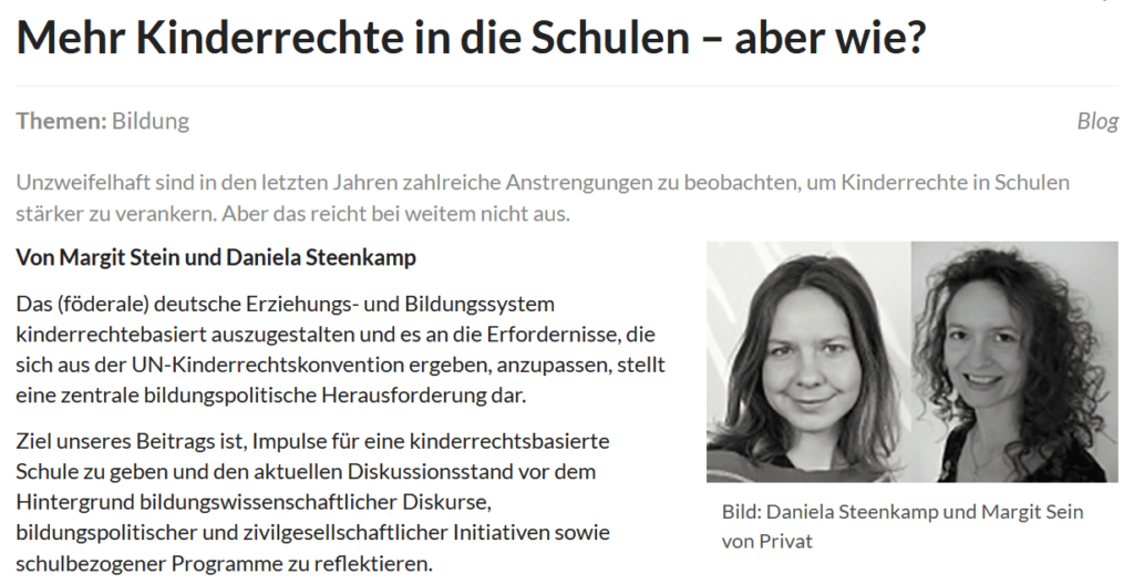 Das (föderale) deutsche Erziehungs- und Bildungssystem kinderrechtebasiert auszugestalten und es an die Erfordernisse, die sich aus der UN-Kinderrechtskonvention ergeben, anzupassen, stellt eine zentrale bildungspolitische Herausforderung dar.