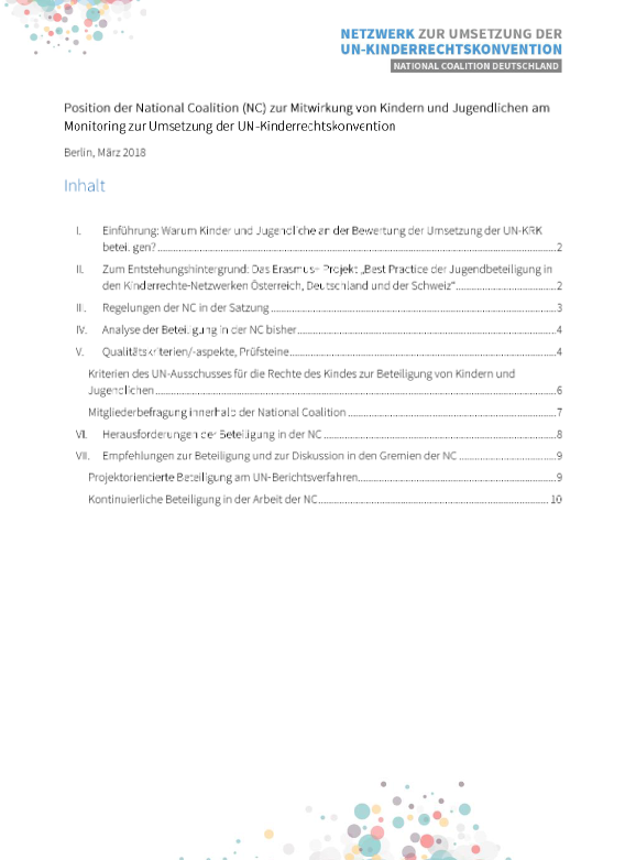 Position zur Mitwirkung von Kindern und Jugendlichen am Monitoringprozess