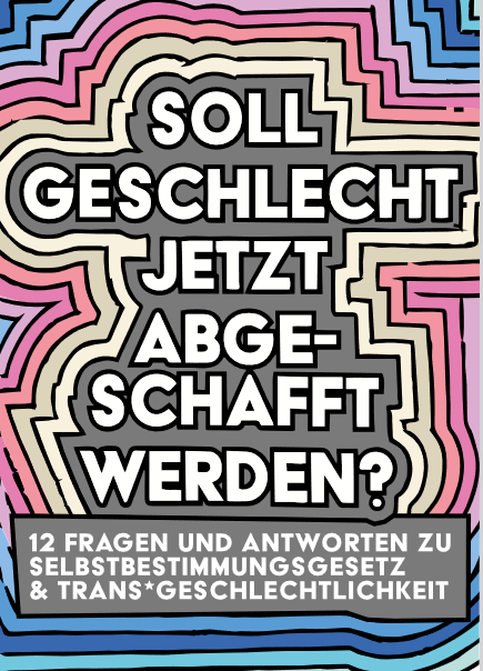 Die Broschüre richtet sich an alle Personen, die gerne mehr über diese Themen erfahren möchten oder die in trans*feindlichen Diskussionen nach fundierten Argumenten suchen.