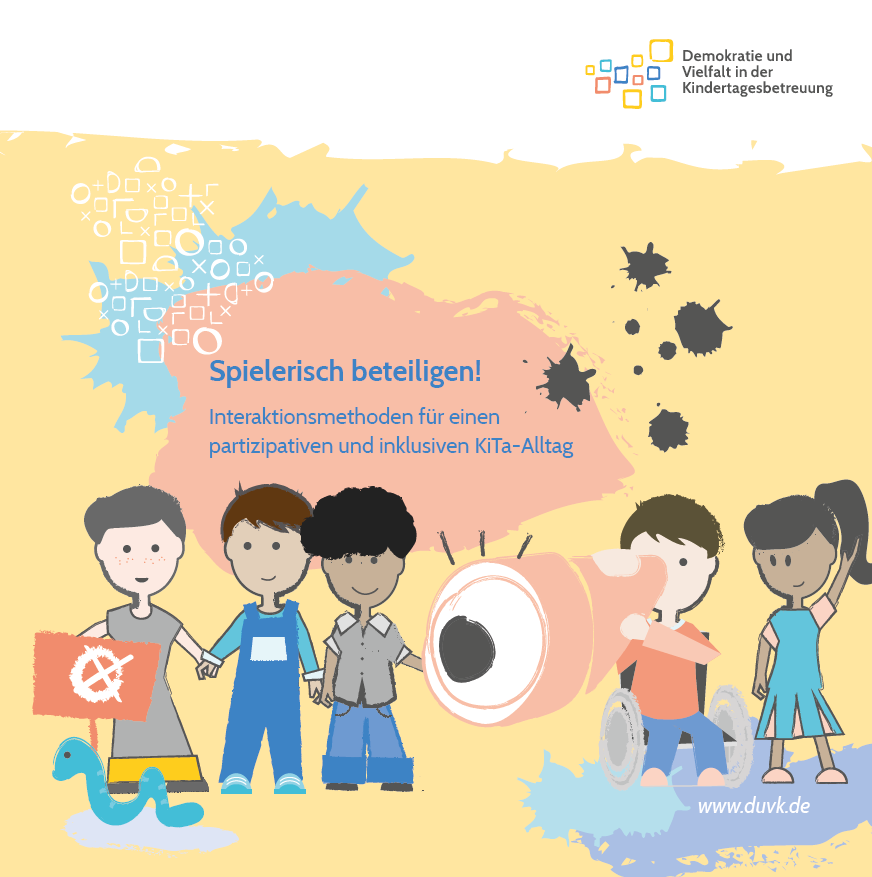 Die Handreichung versammelt 15 Visualisierungs- und Aktionsmethoden, die auf Gestaltung, Bewegung und verbalem Austausch basieren und mit denen eine partizipative und inklusive KiTa-Praxis auf eine kreativ-spielerische Weise gemeinsam mit Kindern und Eltern gestaltet werden kann. Zu den Methoden, die sich an den altersspezifischen Fähigkeiten der Kinder orientieren, gehören z. B. das Erstellen von Protokollen und Gedankenkarten, die Gestaltung einer Familiengalerie und die Entwicklung eines Konzepts für Einrichtungsbesuche mit Kindern. Jede Anleitung enthält Hinweise zur Zielsetzung, zur Dauer und zu den benötigten Materialien als Hilfestellung für die Methodenauswahl. Die Publikation richtet sich an pädagogische Fachkräfte und Kindertagespflegepersonen.